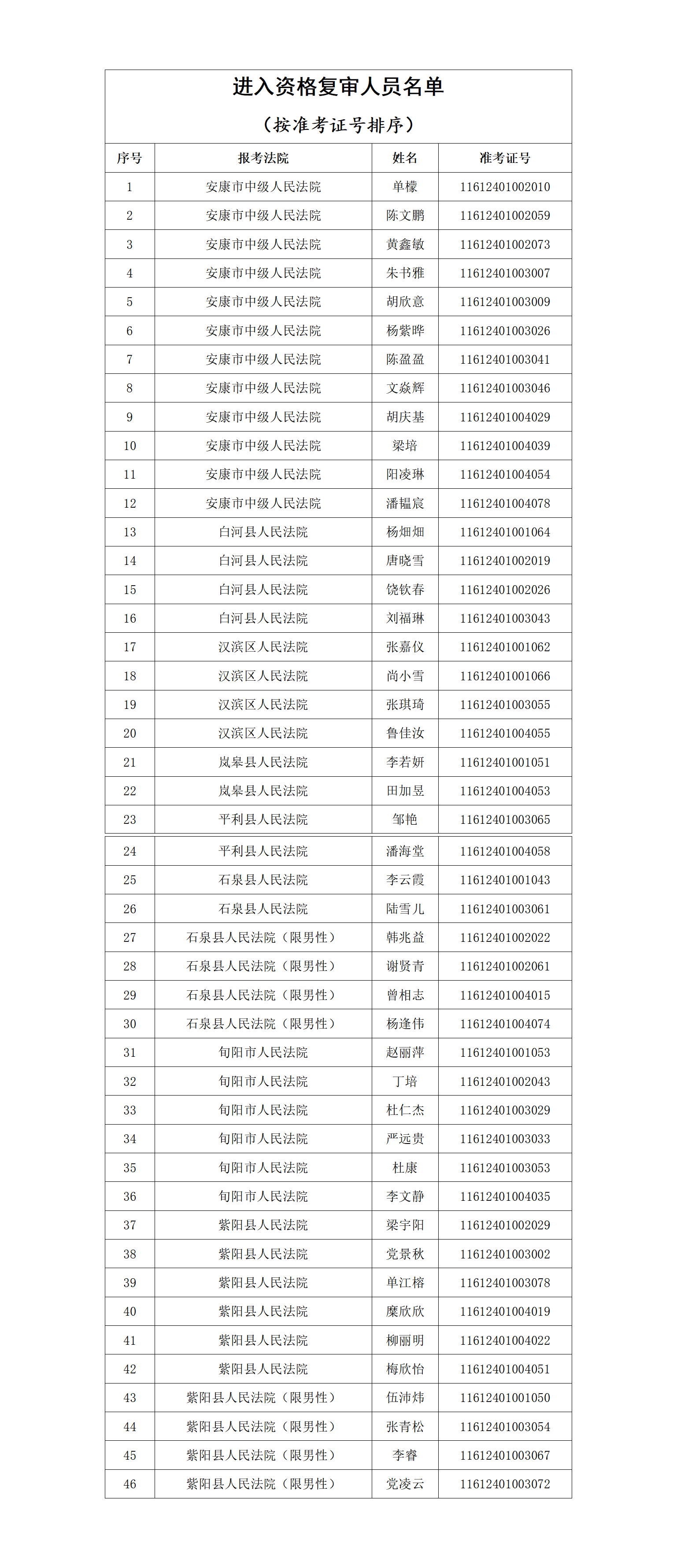 資格復(fù)審工作結(jié)束3日內(nèi),進(jìn)入面試人員名單在安康市中級人民法院及陜西秦潤人力資源集團(tuán)有限公司官網(wǎng)和微信公眾號上進(jìn)行公布。